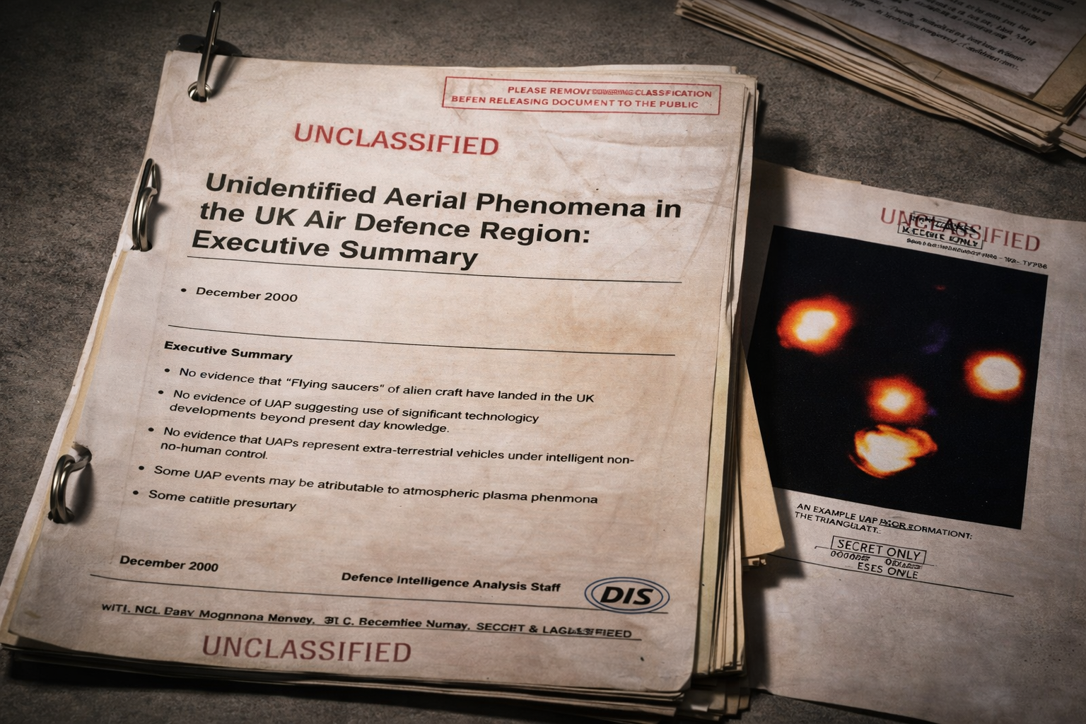 המסמך, שסווג בתחילה כ־Restricted ופורסם לציבור שנים לאחר מכן, מספק הצצה נדירה לאופן שבו מערכת הביטחון הבריטית ניגשה לחקר תופעת העב״מים – לא כאגדה, אלא כנתון מודיעיני הדורש ניתוח מדעי.