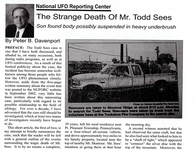 בשעות הבוקר המוקדמות של ה-4 באוגוסט 2002, יצא טוד סיס בן ה-39 ברכבו מביתו סמוך לעיר נורת'המברלנד בפנסילבניה (כ-250 ק"מ צפונית מערבית לפילדלפיה) לכיוון רכס מונטור לבדוק את כמות האיילים לפני עונת הצייד.