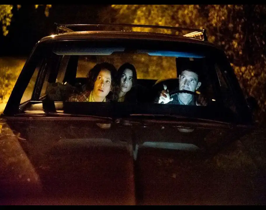 או אז ראו לפניהם קבוצת אורות שהבהבו בצבעים שונים, ממש מעל צמרות העצים שבצד הדרך לפניהם ומספר שניות לאחר מכן אור בהיר שהגיע מכיוון אחר לכיוון קבוצת האורות.