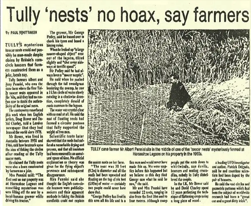 בשעות הבוקר של ה-19 בינואר 1966 נסע ג'ורג' פדלי, איכר בן 28 בטרקטור ליד לגונת פרסת הסוס בסמוך לטאלי שבקווינסלנד (בצפון מזרח אוסטרליה, בסמוך לגדות האוקיאנוס השקט).