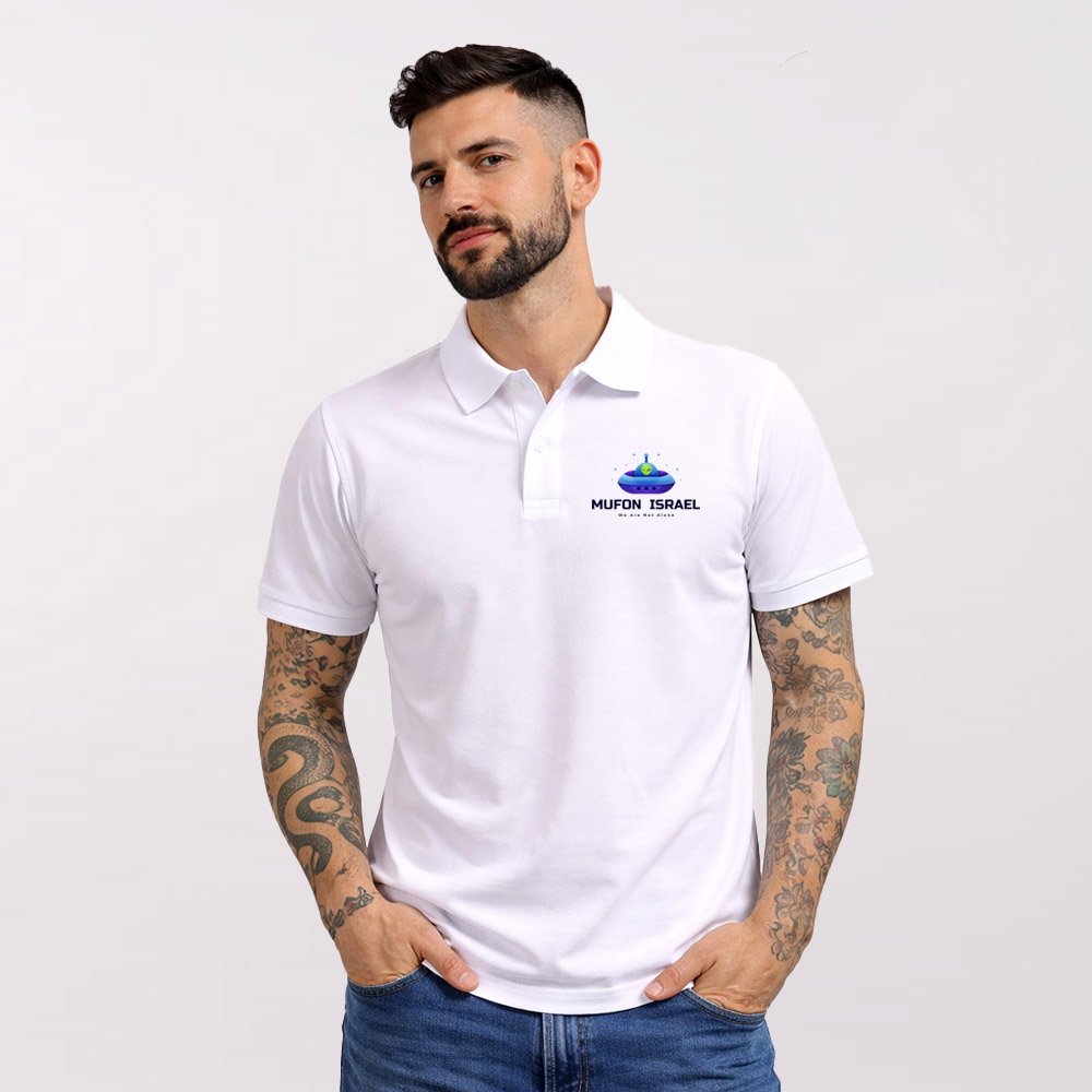 חולצת פולו רשמית וממותגת של MUFON Israel, בעיצוב אלגנטי הכולל את לוגו הארגון והסלוגן האייקוני