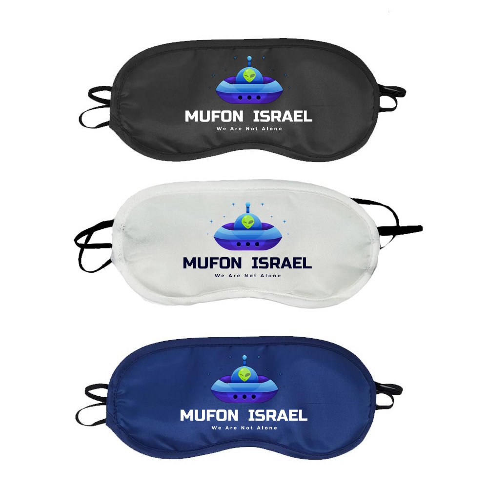 כיסוי עיניים רשמי וממותג של MUFON Israel, בעיצוב ייחודי הכולל את לוגו הארגון והסלוגן האייקוני